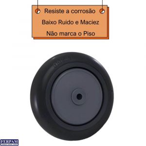 Material exclusivo com alta resistência ao desgaste. Proporciona trabalho silencioso com a absorção de vibrações e proteção ao piso e à carga, ainda permite facilidade e conforto em manobras manuais.