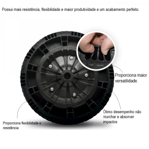 Oferece a você cliente mais eficiência, proporcionado mais flexibilidade e resistência ideal para carrinhos de mão, carrinhos de carga ou carrinhos industriais.