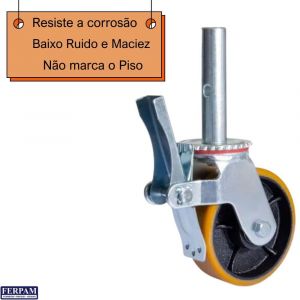 Roda para Andaime Giratória Pino com Freio 140mm PU 350Kg