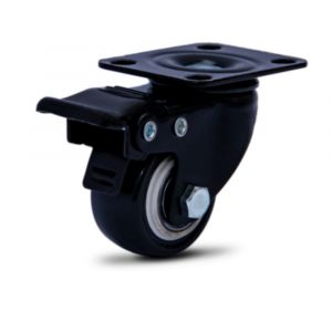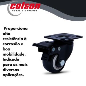 Rodízios em aço com dupla pista de esferas e acabamento zincado, disponível com rodas em resina termoplástica macia com núcleo em polipropileno, com furo passante. Proporciona alta resistência à corrosão e boa mobilidade. Indicado para as mais diversas aplicações.