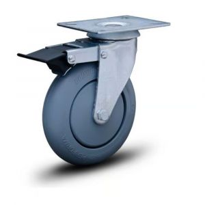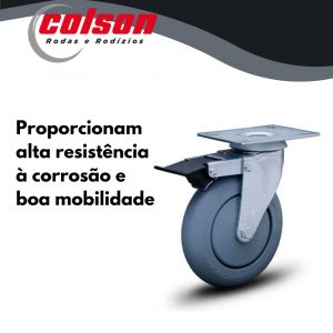 Rodízio Placa Giratória Freio Com Roda de Borracha Plástica 60kg