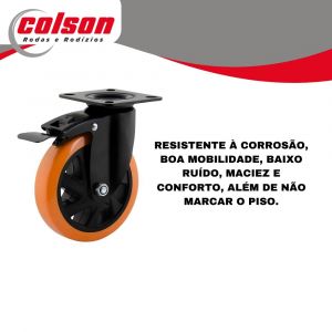 Rodízio 412 Placa Preto Giratório com Freio Roda Polipropileno 90kg Colson