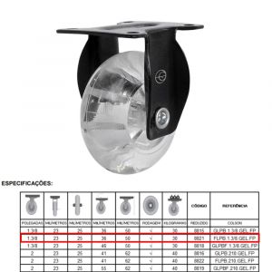 - Vem com a roda gel transparente com proteção ANTI UV (não deixa amarelar), resiste à corrosão, apresenta ótima mobilidade e excelente acabamento estético.