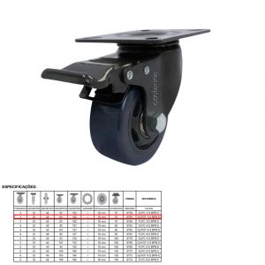 Conteúdo da Embalagem1 Rodízio Carbon Blue 312 Placa Giratória com Freio 70Kg Colson