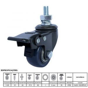 Conteúdo da Embalagem1 Rodízio Carbon Blue Espiga Rosca Giratória com Freio 1.5/8 Pol. 30Kg Colson