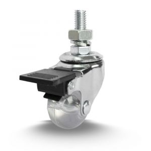 Rodízio Giratório 1.3/8 Freio Espiga Roda Poliuretano Transparente 30kg