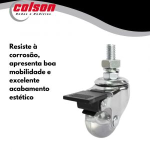 Equipado com um freio, este rodízio oferece estabilidade adicional quando necessário. O freio permite travar a roda, garantindo que o objeto permaneça estável e seguro em determinadas situações. Com sua espiga, este rodízio pode ser facilmente instalado em uma variedade de objetos, oferecendo versatilidade em diferentes aplicações, desde móveis até carrinhos industriais.
