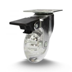 Rodízio Giratório 310 Placa com Freio Roda PoliuretanoTransparente 50kg