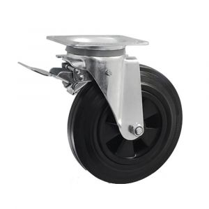 Rodizio Giratório 8x2 Borracha Com Placa E Freio