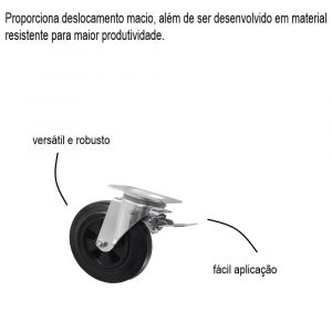 Rodizio Giratório 8x2 Borracha Com Placa E Freio Colson