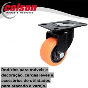 Conteúdo da Embalagem1 Unidade de Rodizio Placa 312 Amarelo Sem Freio Giratório Roda Polipropileno 60Kg Colson