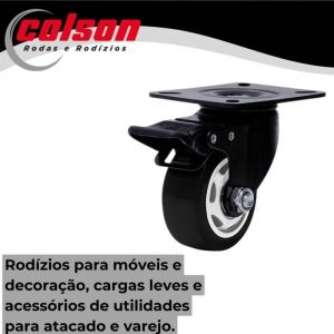 Conteúdo da Embalagem1 Unidade de Rodizio Placa 312 Preto Com Freio Giratório Roda Polipropileno 30Kg Colson