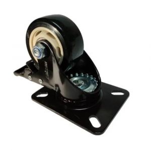 Rodizio Placa 312 Preto Com Freio Giratório Roda Polipropileno 30Kg