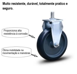 Rodízio Rosca Fixa Com Roda de borracha Plástica 75Kg