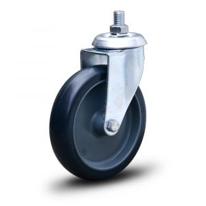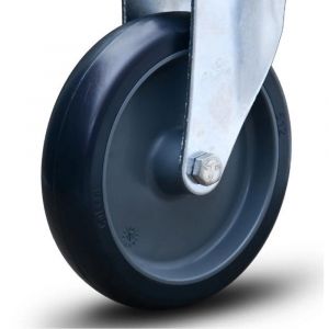 - Rodízio Linha Leve em aço, garfo fixo com roda em resina termoplástica, núcleo em polipropileno com furo passante.