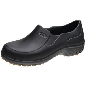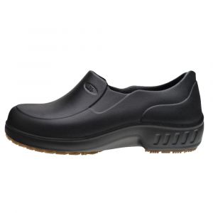 Sapato em EVA na cor preta, com fechamento por inteiro, ideal para profissionais que trabalham em hospitais e nas demais áreas da saúde, alimentação ou serviços gerais.