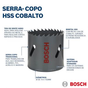 - A serra copo Bosch em bimetal encaixa em todos os adaptadores standard no mercado, ela efetua o corte com rapidez em vários materiais.