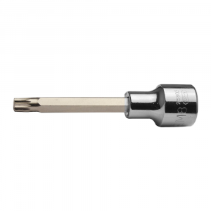 Chave soquete com ponta bit multidentado (spline) M5 e encaixe de 1/2 polegada. Seu design longo oferece acesso facilitado a parafusos em locais profundos ou de difícil alcance, ideal para aplicações automotivas e industriais com precisão e segurança.