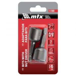O Soquete Canhão Magnético 12mm x 45mm - 2 peças, da marca MTX, é um acessório projetado para uso em parafusadeiras e furadeiras, facilitando a fixação de parafusos com cabeça sextavada. O modelo magnético mantém o parafuso firme durante o trabalho.