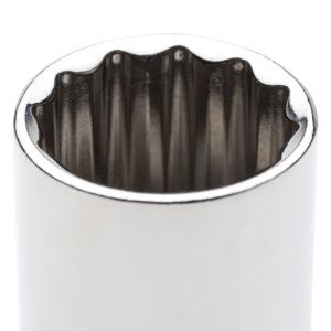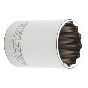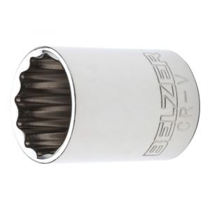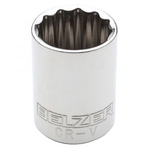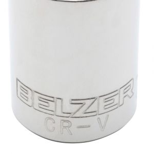 Soquete estriado Belzer com encaixe de 1/2" e medida 7/16", fabricado em aço cromo-vanádio com acabamento cromado. Ideal para aperto e desaperto de porcas e parafusos com maior resistência e precisão.