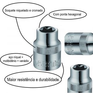 Conteúdo da Embalagem1 Soquete Tipo Torx 3/8 E7 Sata