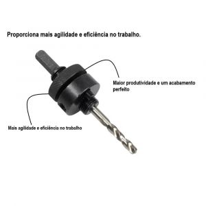 - Ideal para ser utilizado como suporte juntamente com serras copo e brocas piloto em trabalhos de perfuração em aço.