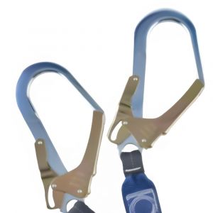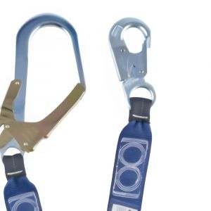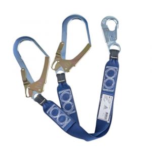 - Fabricado em poliéster resistente, este talabarte possui fixações em mosquetões de alta qualidade de 55mm e 18mm para a fixação do cinto de segurança especializado.