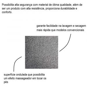 - Superfície ondulada que possibilita um efeito massageador em tocar os pés e ainda garante facilidade na lavagem e secagem.