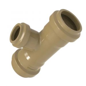 Fabricado em PVC, este tê oferece alta resistência para redes adutoras. O sistema de junta elástica (JE) com três bolsas (BBB) foi projetado para uma instalação ágil e segura. É a solução ideal para criar ramificações em tubulações de água com diferentes diâmetros.