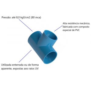 Tê Soldável Irrigação DN50, conta com facilidade de instalação, ótima resistência, resiste a produtos químicos utilizados em fertirrigação e aos solos contaminados. Garanta já o seu!