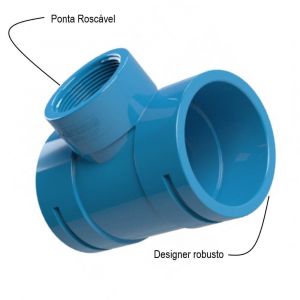 - Possui na linha principal bolsas femeas soldáveis unidas por adesivo a tubulação.