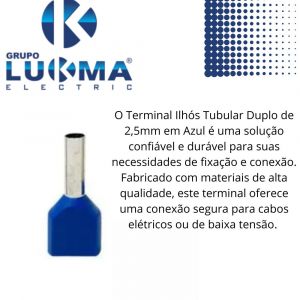 Terminal Tubular Duplo Ilhos 2,5mm Azul