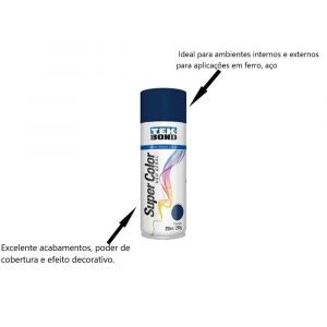 - O tekbond spray supercolor uso geral foi desenvolvido com resinas acrílicas de secagem rápida e ótima resistência as intempéries, proporcionam excelentes acabamentos, poder de cobertura e efeito decorativo.