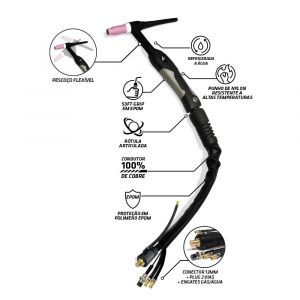 Tocha Tig 18HF Flexível Refrigerada 350 Amperes 3 Metros