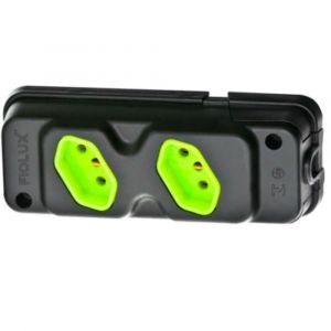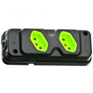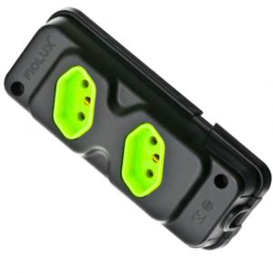 A Tomada em Barra Fiolux com 2 entradas tripolares 20A é ideal para aparelhos de alta potência com design robusto nas cores preto e verde, oferece segurança, resistência e praticidade em instalações residenciais, comerciais ou industriais.