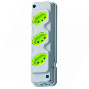 Tomada em Barra 3 Entradas Tripolar 20A Cinza e Verde Fiolux
