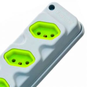Conteúdo da Embalagem1 Tomada em Barra 3 Entradas Tripolar 20A Cinza e Verde Fiolux