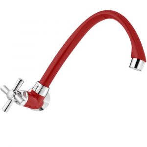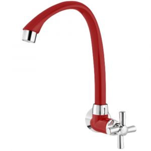 Torneira para Cozinha/Parede Vermelha Cromada Bica Alta Móvel 1/2 x 3/4 Pol. Cross