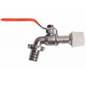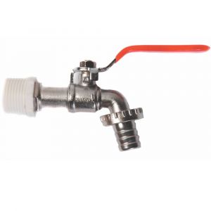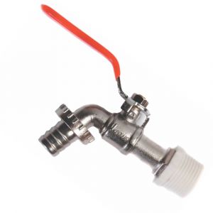 Torneira esfera 1/2" com saída 3/4" em plástico resistente, esfera de latão e vedação em nylon, garantindo durabilidade e vedação eficiente, ideal para uso residencial e industrial, fácil de instalar e perfeita para sistemas hidráulicos variados.
