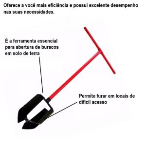 - Ideal para abertura de buracos em solo de terra, saibro ou areia.