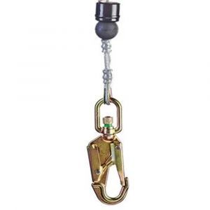 - Na extremidade do cabo de aço é conectado um conector em aço forjado tipo gancho de 20 mm de abertura com dupla trava e indicador de impacto.