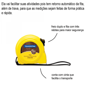 Conteúdo da Embalagem1 Unidade Trena Com Fita de Aço 5m Tramontina