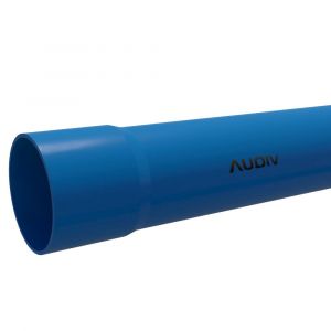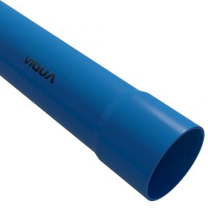 Tubo de PVC rígido Viqua DN125 PN 80 de 6 metros, junta soldável ponta‑bolsa, cor azul é ideal para sistemas de irrigação enterrados, aspersão, gotejamento e adução, com alta resistência mecânica e química.