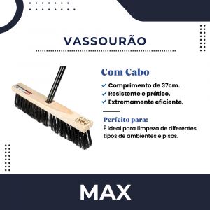 Conteúdo da Embalagem1 Unidade Vassourão de Gari Madeira com Cabo 37 cm 1,20 Metros Max.
