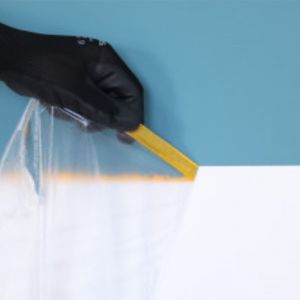 - A combinação de plástico protetor e fita crepe facilita a aplicação e fixação, evitando sujeira e respingos de tinta.
