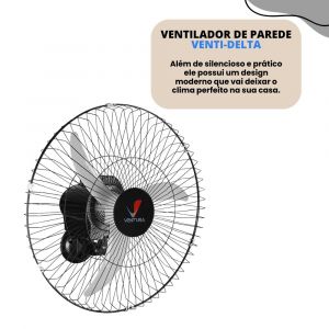 Conteúdo da Embalagem- 1(um) Ventilador de Parede Oscilante Preto Ventura 60cm Venti-Delta