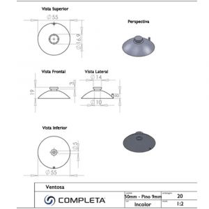 - A ventosa 50mm pino 9 incolor completa é utilizada para fixações temporárias e leves, oferecendo praticidade e eficiência.